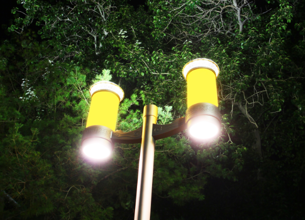 中間部分的LED光源,主要是保證燈筒的裝飾照明,由于燈筒為玻璃材質(zhì),且上照光源下沉,要保證通體均勻發(fā)光,存在很大的難度。對此LED研發(fā)團隊反復研究燈筒結(jié)構,獨特提出了側(cè)發(fā)光配光方案,為此燈筒開發(fā)了側(cè)發(fā)光LED小模塊,此小模塊選用Cree XPG2大功率燈珠,防護等級為IP66,并通過小模塊的組合應用,每個燈筒采用10個小模塊,采用由下而上的照射方式,巧妙的解決陰影,達到通體均勻發(fā)光的照射效果。并且由于采用模塊化設計,維護方面非常方便。