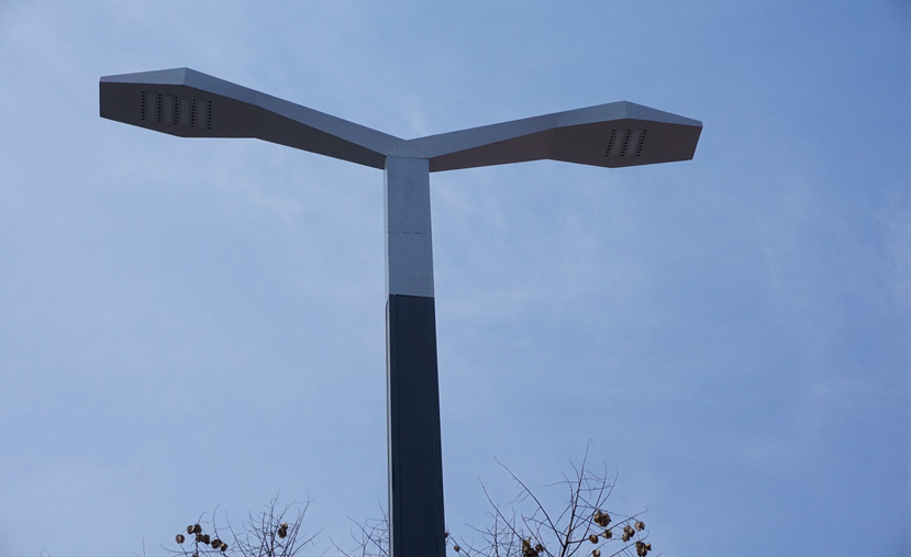 “科技之光”路燈用硬朗的線條設計語言詮釋科技的內(nèi)涵,幾何的構成帶來強烈的工業(yè)感和力量感。