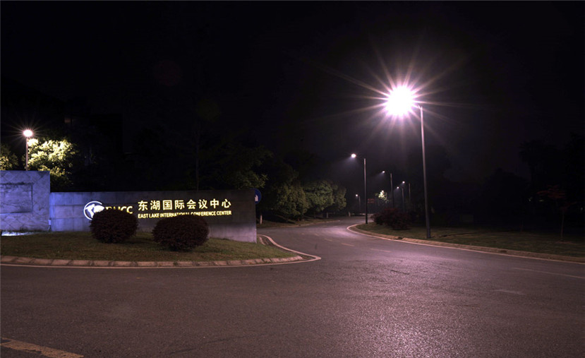 同時,華體照明根據(jù)東湖賓館接待區(qū)內(nèi)道路和周圍環(huán)境,采用色溫為3000K的100瓦LED光源,燈桿高7.5米,燈桿高度和照明亮度和周圍環(huán)境很好地吻合,毫無違和感。