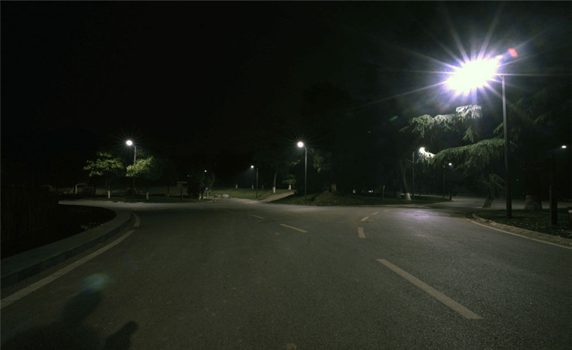 “山水”燈和道路兩旁綠化和諧交融