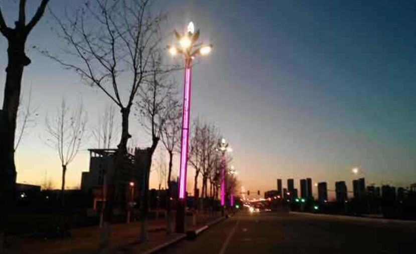 科技大道,位于煙臺(tái)高新區(qū),是煙臺(tái)“智慧城市”的試點(diǎn)區(qū)域。2015年底,春意盎然的到來(lái)為整個(gè)園區(qū)增添無(wú)限生機(jī)和活力。它寓意春季萬(wàn)物復(fù)蘇,百花齊放,城市的經(jīng)濟(jì)蒸蒸日上。春意盎然高15米,主要是通過(guò)花卉造型進(jìn)行抽象設(shè)計(jì)而來(lái)。燈桿中部加裝LED氛圍光帶,使夜間照明更加絢麗;燈體內(nèi)部安裝智能控制系統(tǒng),使照明高效節(jié)能、綠色環(huán)保,另外燈桿上安裝攝像頭,為路燈裝上“眼睛”,實(shí)現(xiàn)了多平臺(tái)的交互運(yùn)用