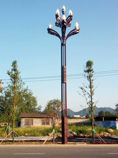 石門,隸屬于湖南省常德市,是湘西北門戶,擁有豐富的旅游資源,其中夾山寺是中國茶禪文化的發(fā)源地,素有“中國茶禪之鄉(xiāng)”的美譽(yù)。夾山寺自唐至明七百多年間為澧水流域佛教文化中心,相傳是明末清初農(nóng)民起義領(lǐng)袖李自成兵敗禪隱圓寂的墓葬, 2014年夾山風(fēng)景區(qū)被定為4A級(jí)風(fēng)景區(qū)。 夾山大道,是石門縣縣城主干道之一。 為改善夾山大道目前照明效果不佳的現(xiàn)狀, 2016年1月,石門縣城區(qū)道路提質(zhì)改造項(xiàng)目(夾山大道)全面啟動(dòng),四川華體照明科技股份有限公司根據(jù)夾山大道的道路情況以及當(dāng)?shù)氐奈幕兀O(shè)計(jì)并安裝了“茶禪一味”八叉九火玉蘭燈。