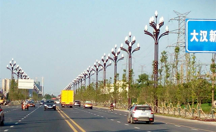??诮瓥|新區(qū)主干道的這些路燈,有“飛”一般的感覺