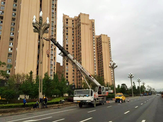 3月29日上午,綿竹市蘇綿大道、回瀾大道路燈改造工程正式啟動。 據(jù)了解,蘇綿大道、回瀾大道的路燈于2004年安裝,距今已有12年,大部份燈組已出現(xiàn)損壞現(xiàn)象。為了營造舒適的人居環(huán)境,提升城市景觀,華體照明積極配合蘇綿大道、回瀾大道路燈改造工程,設(shè)計并安裝了16米八叉九火玉蘭燈。