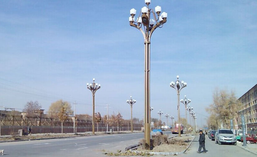 芙蓉中華燈,即“花燈”,指的是多頭,植物造型的燈桿。該款燈在傳統(tǒng)中華燈的基礎(chǔ)上進行了改良,保留其神韻,加入新的元素,巧妙的運用花瓣的形式,實現(xiàn)了燈桿與燈頭的實體鏈接。華燈初上,幸福路上芙蓉花開,給市民夜間出行帶來便利,營造出溫馨浪漫的氛圍,照亮阿拉爾人民的幸福生活。