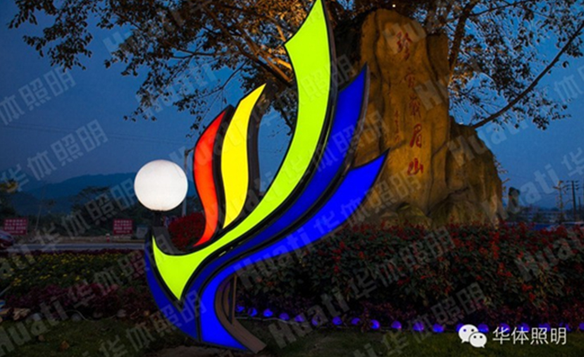 鳳凰明珠共兩組,安裝于峨眉大排檔廣場。鳳凰,是傳說中的百鳥之王,羽毛美麗,常是天下太平祥瑞的象征。燈光小品鳳凰明珠以鳳凰為創(chuàng)意主體,經(jīng)過提煉與簡化的藝術表現(xiàn)手法,呈現(xiàn)出鳳凰嘴銜明珠的美好意象。五彩的鳳凰羽翼以濃厚的感情色彩表達了對市民游客平安吉祥的祈福,同時也表達了對于旅博會圓滿成功舉行的美好祝愿。