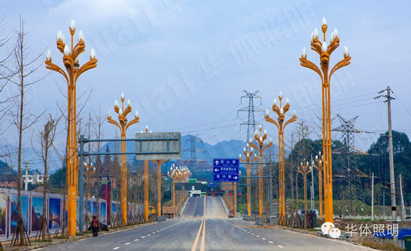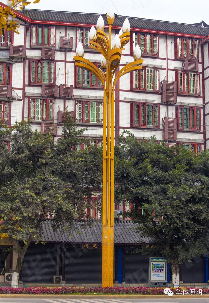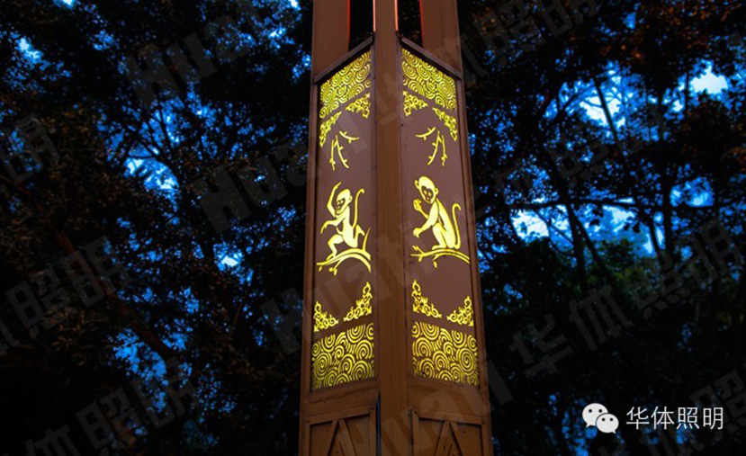 玉蘭燈,系華體照明精心打造的景觀照明路燈,兼顧景觀性與功能性,矩桿中間加載有可變色節(jié)日氛圍燈,營造出熱鬧的節(jié)日氛圍,節(jié)日氛圍燈的下方,鏤空的靈猴嬉戲圖活潑生動憨態(tài)可掬,在色彩變幻的LED貼片燈的照射下更加清晰靈動,帶給剛踏進(jìn)峨眉之地的游客驚喜。