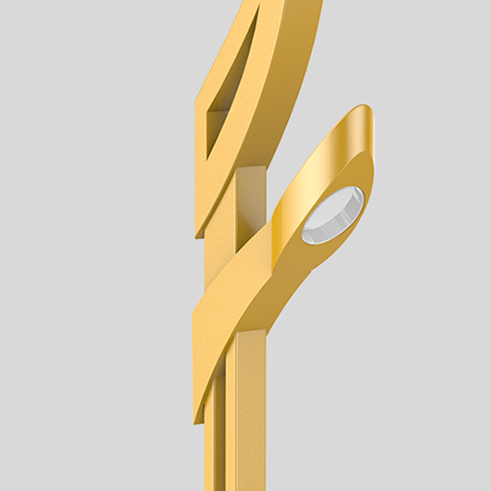 燈臂的設計以飛翔的鳳凰姿態(tài)為元素,將鳳凰的尾部特征高度提煉作為燈具的主體造型。