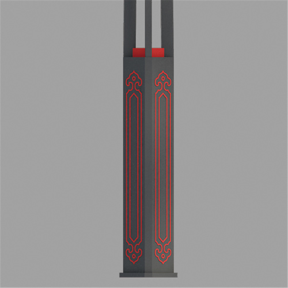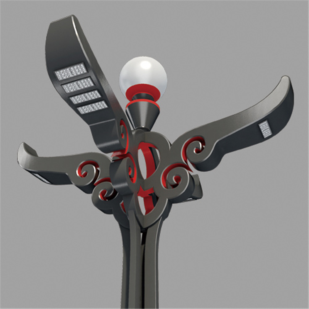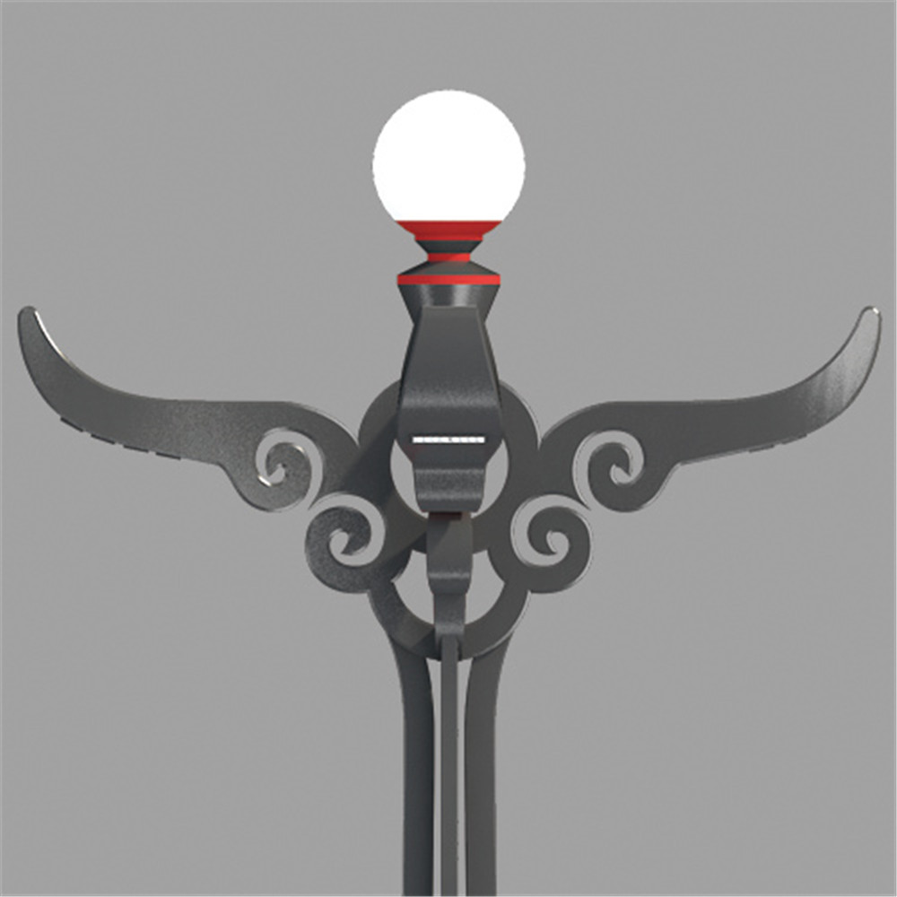 以傳統如意紋樣為元素,與牛角相結合。將吉祥如意的美好愿景與燈具相結合。如意紋中部內透光裝飾為城市景觀照明增添一抹亮色。
